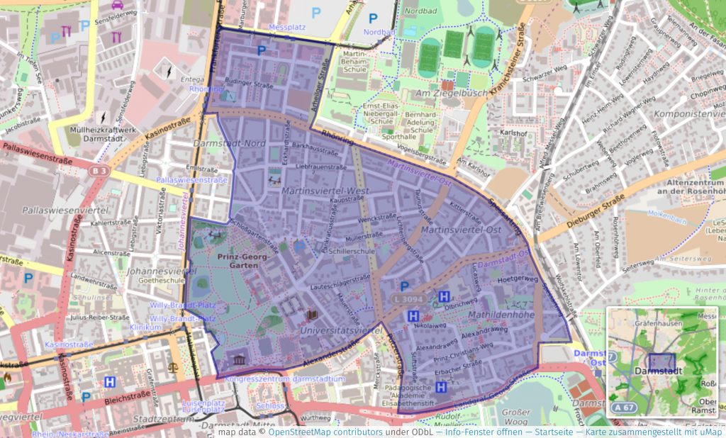Das Einzugsgebiet der Schillerschule befindet sich im Martinsviertel, einem Stadtteil von Darmstadt.