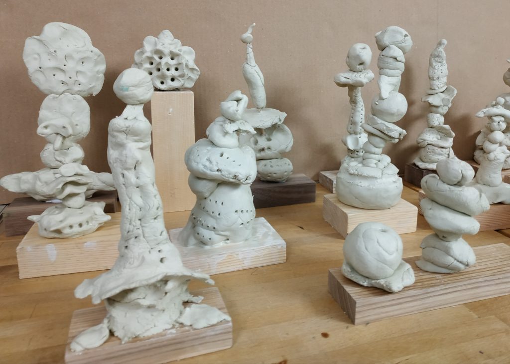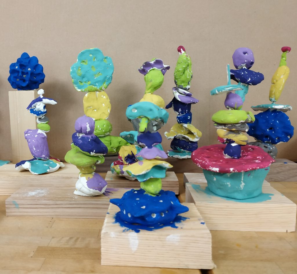 Außerdem formten wir abstrakte Skulpturen nach dem Vorbild des Künstlers Tony Cragg, dessen Werke wir auf dem Skulpturenpfad erkundet haben. Von der Mathildenhöhe ging es zur Rosenhöhe, wo die Kinder die Skulpturen auch zeichnerisch erfassen konnten.
