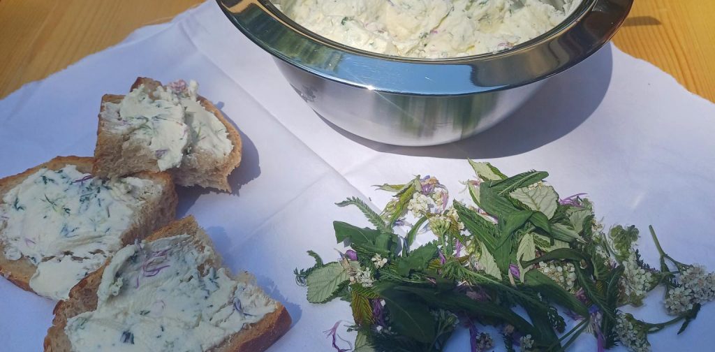Darüber hinaus haben wir die Natur auf der Rosenhöhe erforscht und Kräuter bestimmt sowie gesammelt. Anschließend wurden die Kräuter mit selbstgemachtem Kräuterfrischkäse auf Brot verköstigt.