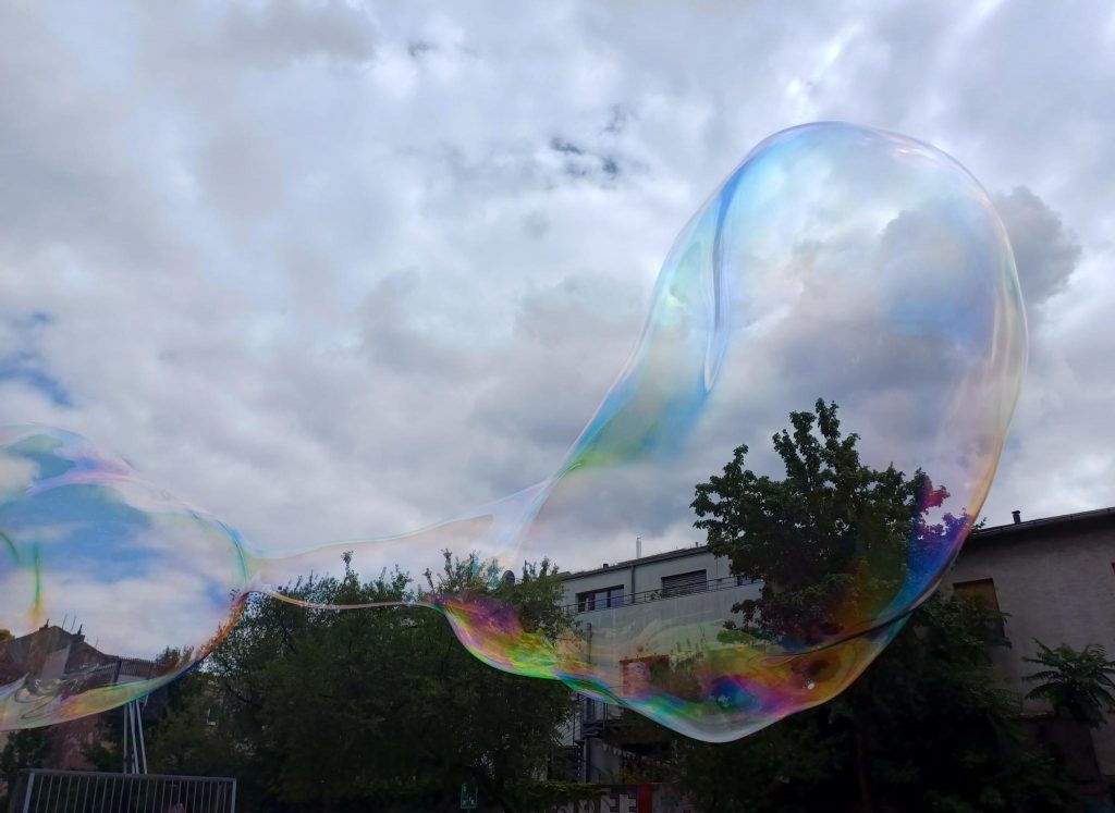 Experimentierfreude zeigten die Kinder beim Ziehen großer Seifenblasen.